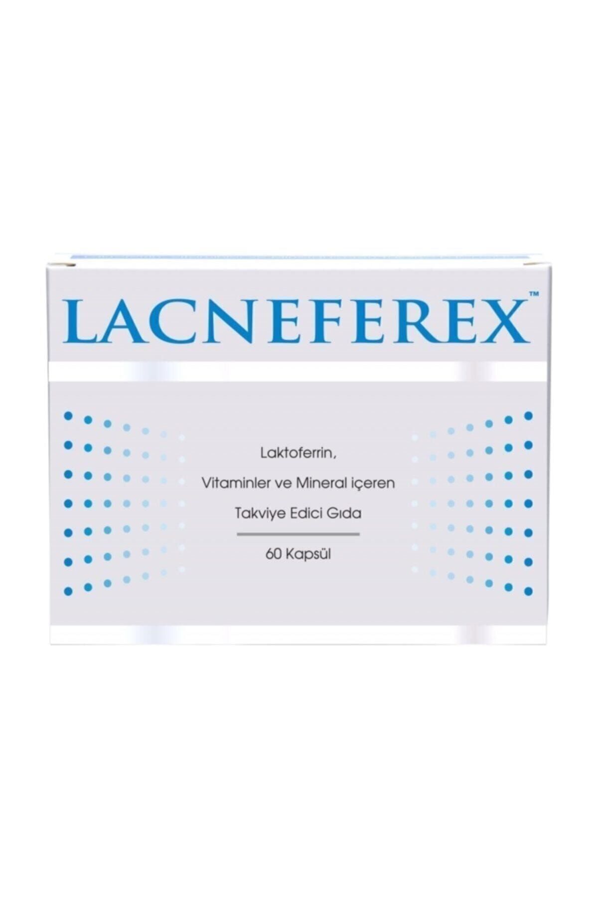 AÇIKLAMA Lacneferex 60 Kapsül LACNEFEREXTM Laktoferrin, Vitaminler ve Mineral içeren Takviye Edici Gıda İçindekiler: Kıvam artırıcı (Mikrokristalin selüloz), Laktoferrin, Kapsül (Hidroksi-propil metil selüloz), Çinko glukonat, D-Pantotenat, kalsiyum, DL-alfa tokoferil asetat, Emülgatör (Yağ asitlerinin magnezyum tuzları). Etken Madde Günlük alım dozu Miktar 2 kapsül BRD*Laktoferrin200 mg–Vitamin B560 mg%1000Vitamin E14,74 mg ?-TE%122,83Çinko10 mg%100 BRD: Beslenme referans değerleri Kullanım Bilgisi: 11 yaş ve üzeri yetişkinler günde 2 (iki) kapsül tüketmelidir. Tavsiye edilen günlük porsiyonu aşmayın. Takviye edici gıdalar normal beslenmenin yerine geçemez. Çocukların ulaşamayacağı yerde saklayın. İlaç Değildir. Hastalıkların önlenmesi veya tedavi edilmesi amacıyla kullanılmaz. Hamilelik ve emzirme dönemi ile hastalık veya ilaç kullanılması durumlarında doktorunuza danışın. Parti No ve Tavsiye Edilen Tüketim Tarihi (TETT) ambalaj üzerindedir. Kuru ve Serin yerde muhafaza ediniz.