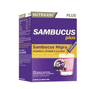 Nutraxin Sambucus Plus; Bağışıklık sistemimiz için önemli olan C vitamini, D vitamini ve çinkoya ilave olarak, Sambucus nigra ekstresi içerir. Toz efervesan formundadır. Suda kendiliğinden erir ve kolayca karışır. Frenk üzümü aroması ile son derece lezzetlidir.